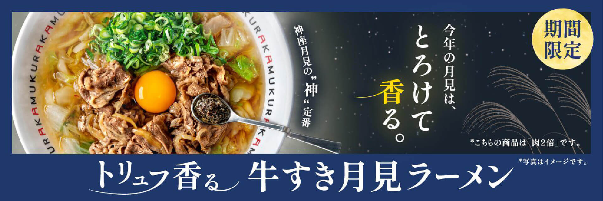 神座の黄金スープ × 濃厚な香りのトリュフが織りなす、この時期だけの上品な味わい『トリュフ香る牛すき月見ラーメン』が登場。ダミーテキスト